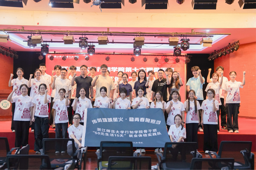 2025年7月13日上午,浙江师范大学行知学院隆重举行习近平新时代中国特色社会主义思想研习社暨第十六期大学生骨干培训班赴南昌“就业体检”实践队出征仪式。仪式于学院大学生活动中心举行,旨在激励青年学子深入社会、锤炼意志、增长才干。学院团委书记于倩倩主持仪式。